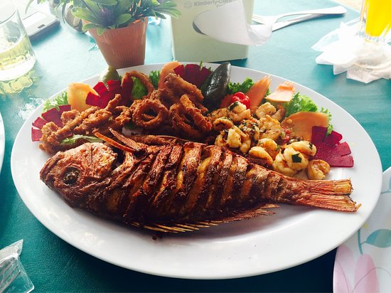 6. almuerzo en la isla barú sector playa tranquila, tres opciones: pescado frito, pechuga asada, vegetariano; acompañado de arroz con coco, patacones y ensalada.